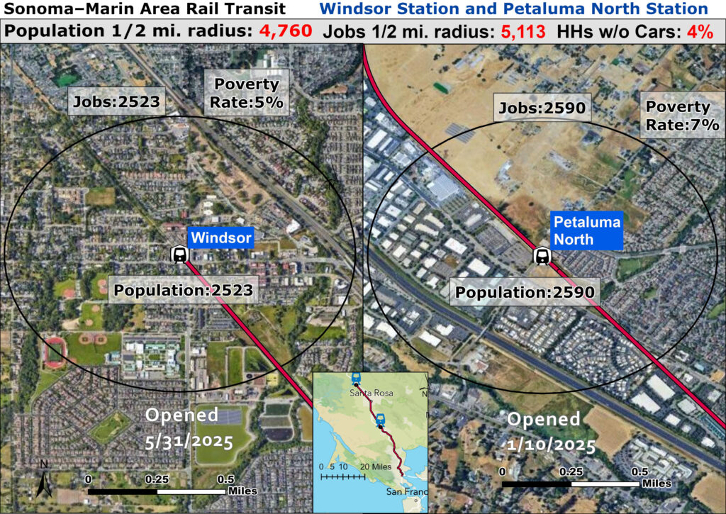 These openings mark SMART’s first system expansion since 2019 and represent tangible progress in a long-term plan to extend rail service northward to Healdsburg and eventually Cloverdale. The new stations improve transit access for commuters, students, and visitors, reduce reliance on Highway 101, and encourage economic activity and transit-oriented development in Marin and Sonoma counties by linking communities more directly to employment centers, ferry connections, and regional destinations.